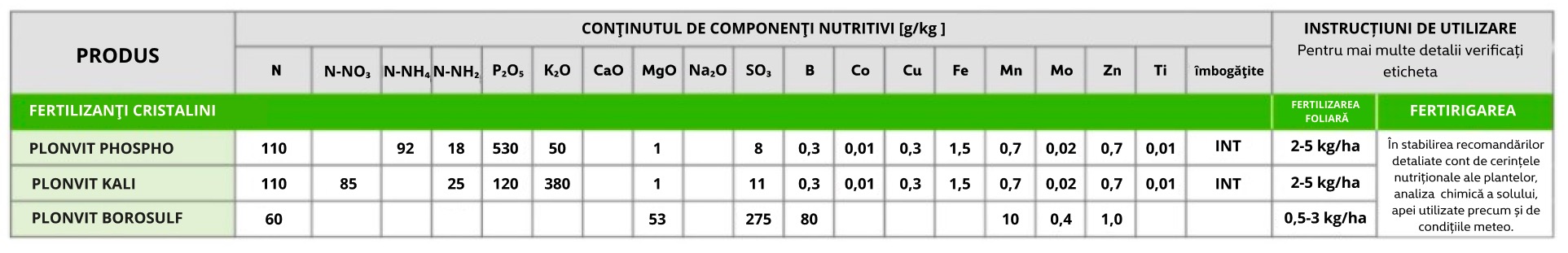 Gama de îngrășăminte PLONVIT® se caracterizează printr-o solubilitate excelentă și compatibilitate cu alte produse agrochimice, drept pentru care se constituie ca resursă de bază la intocmirea planurilor de fertilizare foliară ale culturilor de câmp.